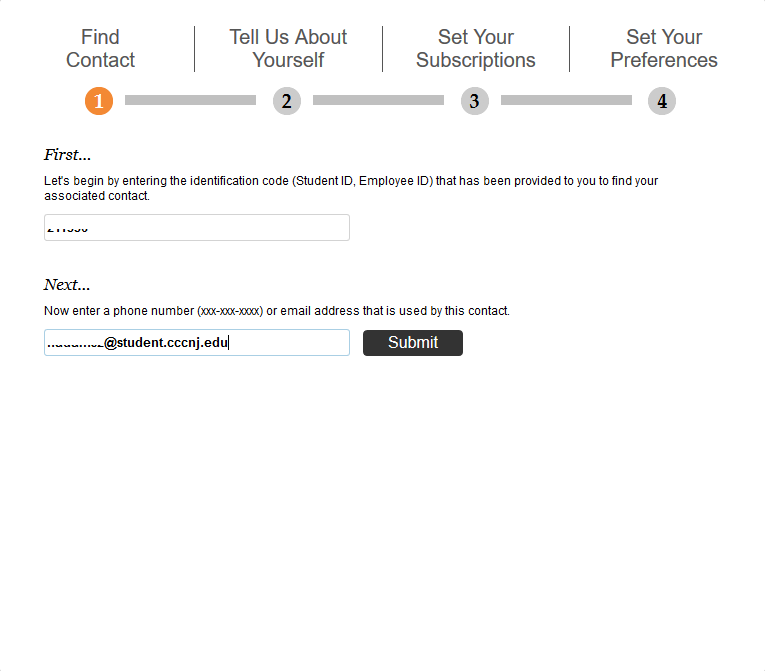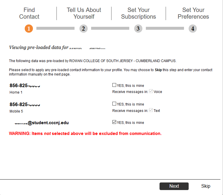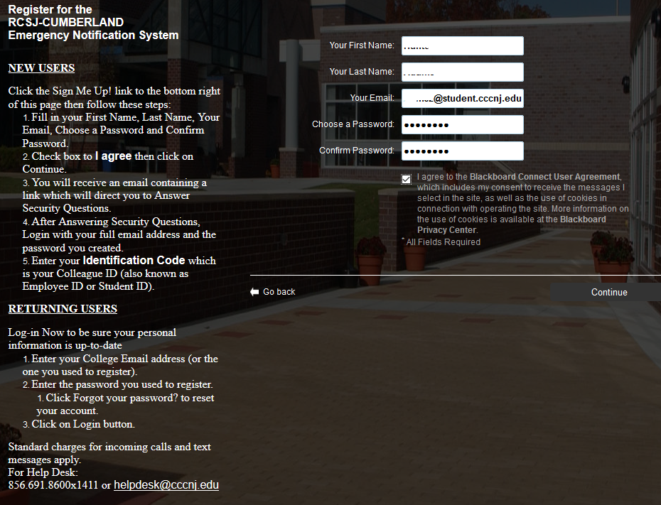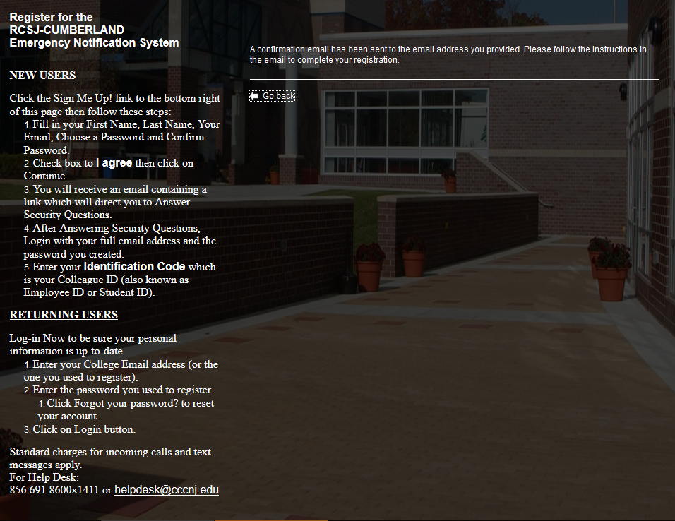 1) Go to https://www.rcsj.edu/Security-site/Cumberland-site/Pages/Emergency-Notification.aspx